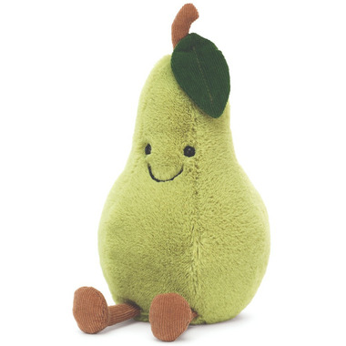 Amuseable Pear is a roly-poly pal, with a tubby green tummy in scrumptious-soft fur. This fruity friend has little cordy feet and a matching cord stalk and leaf! With a beany bottom and beaming smile, this pear's a peach!