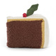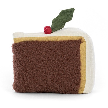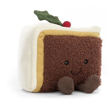 When you're full of food and feeling snoozy, snuggle Amuseable Slice of Christmas Cake! Chunky-cheery, this fluffy brown cake has suedey layers of marzipan and icing. With a dapper green and red holly quiff, bobbly boots and a friendly grin, this squashy slice is full of sweetness.