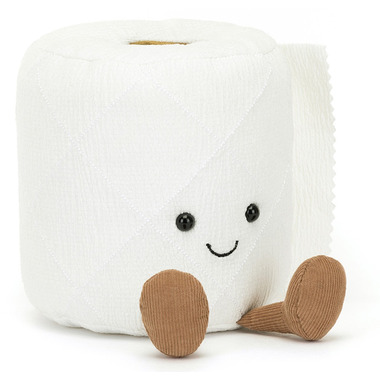 Amuseables Toilet Roll is the ultimate cushioned comfort. Textured paper with stitched quilting detail is wrapped around a suedette tube, and finished with fine cord legs, a stitched smile, and a perforated edge.
