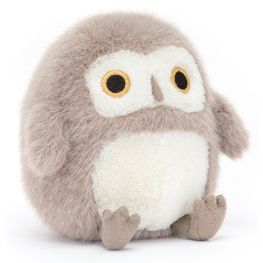 As bright and proud as the Moon itself, it's Bashful Owl. This sturdy bird stands plump and tall on mustard feet, with a matching beak, scalloped wedge wings, gossamer tufts and keen hazel eyes. Quite a sight at dusk!