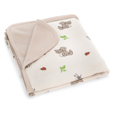The Bashful Bunny Jersey Blanket is a travel treat for sleepy tots. This gentle blankie comes in a print card keeper and is covered in beautiful bunnies and bugs. Chewable, holdable, wrappable, snugglable - an adorable present for any little wanderer.