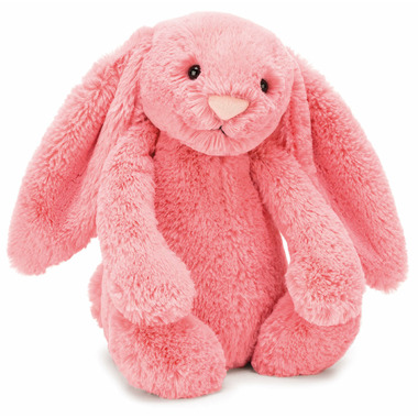Bright and bonny in vibrant pink, Bashful Coral Bunny Medium is here to play! Lopsy and squishy, with a bunny bobtail, this candy cutie makes such a sweet playmate. Squashy paws and long, lovely ears make this iced bun perfect for any playroom!