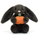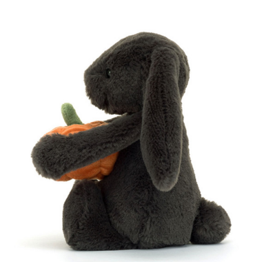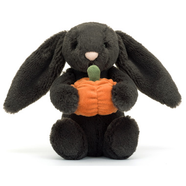 Bashful Pumpkin Bunny has brought a gift – a ruched orange pumpkin with a green suedette stalk! This licorice bunny has a matching silky bobtail, long lop-ears and a tiny pink nose. A helpful pal for trick-or-treaters!