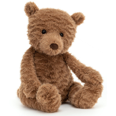 Cocoa Bear is a classic scruffle chum, with rumple-soft praline fur. This curious cub has big squishy paws, a choc-drop nose and a caramel muzzle. With long, lopsy arms and perky wee ears, this baby bear is a scrumptious gift. Perfect for rangers in training!