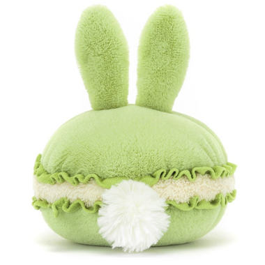 Dainty Dessert Bunny Macaron is a patisserie sweetie, with tousled green ears, a fluffy cream bobtail, and a smiling embroidered face. This sweet bunny treat has suedette meringue frills and a tufty cream filling – they're the star of the bakery window!