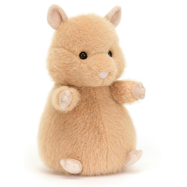 Hank Hamster is Gordy Guinea Pig's pal, and just as divinely podgy. This fuzzy hamster has apricot fur and gently folded peach ears. With soft stitch claws, an embroidered nose, chubby cheeks and curious eyes, Hank is a treasure for your desk or pocket.