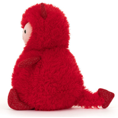 Hugg McSnugg is the love monster that shares the most joy and love all year long. In soft red fur with a generous tummy, Hugg has a sweet, heart-shaped face in pale pink fur. This cheeky chap has glitter jersey horns, arms, legs and tail dart – the perfect way to share the love with someone special.