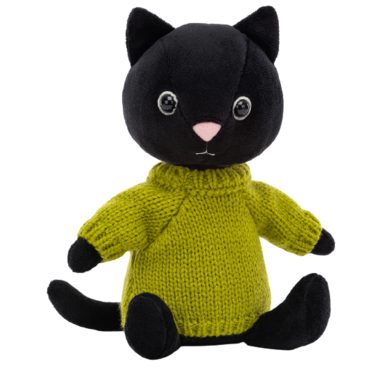 A curious cat with a toasty tummy - that's Knitten Kitten Lime! Liquorice-black with short, stretchy fur, our merry moggy wears a fruity green sweater! This zingy kitty has dinky ears, inquisitive eyes and squishable paws, not to mention a wonderful wardrobe!