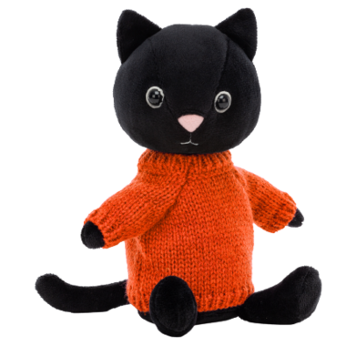 A curious cat with a toasty tummy - that's Knitten Kitten Tangerine! Liquorice-black with short, stretchy fur, our merry moggy wears a fruity orange sweater! This zingy kitty has dinky ears, inquisitive eyes and squishable paws, not to mention a wonderful wardrobe!