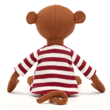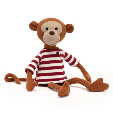 Madison Monkey is super-curious, always looking to see who's about! Genial, ginger and full of fun jokes, with a smiley peach face and a striped button top, Madison loves a banana coffee! With a long waggle tail, foldy ears and heart-shaped feet, this is the monkey to meet!