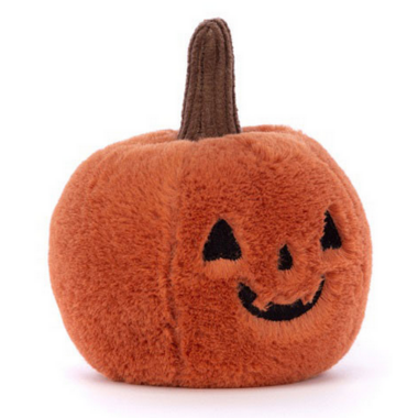 Ooky Jack O'Lantern stays smiling all year long! Super soft in burnt orange fur, this pocket-sized pumpkin has a stitched face and suedette stalk, perfect for bringing the Halloween spirit anywhere!