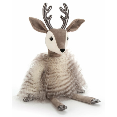 Someone's snuggled up for winter! Robyn Reindeer has her coziest coat on, in cloudy two-tone fluff. This elegant deer has soft mocha fur and pewter booties to match her antlers. Her delicately detailed ears, stitched eyelashes and long, lopey legs are part of her cheery charm!