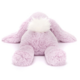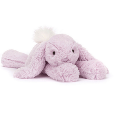 Smudge Lavender Rabbit is the perfect pastel pal. Scrumptiously soft in lavender fur with a fluffy cream bobtail, this lop-eared bunny has trumpet legs and a soft tum for the most luxurious of cuddles. This little rabbit is a loving companion, and the perfect gift for all ages.
