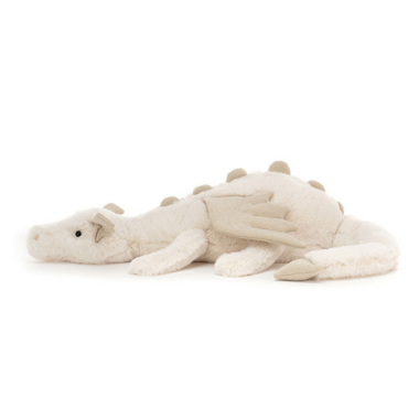 Lounging around like a creamy cloud, it's loveably lazy Snow Dragon! This marshmallow marvel shimmers with magic, from sparkling spines to ears, wings and tail dart! This sumptuous softy loves flapping up a blizzard!