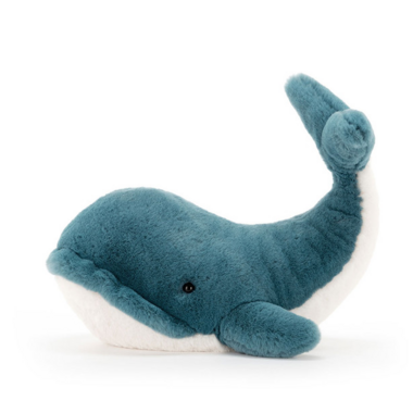 Fresh from the ocean and full of smiles, it's wonderful Wally Whale! He's a beautiful buddy with vibrant teal fur and the softest, most tickly underbelly. This quirky whale holds his splendid tail high, and just a little to the side. He's got a sea-style of his own!