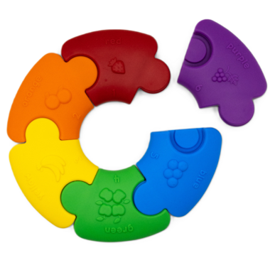 The Colour Wheel Puzzle is crafted with utmost safety, being BPA-free, phthalate-free, PVC-free, cadmium-free, and lead-free, ensuring a secure environment for learning and chewing. It's both freezer and dishwasher safe for added convenience. Keep the Colour Wheel clean by using a sterilizer, placing it in a dishwasher, or washing it with warm soapy water.
