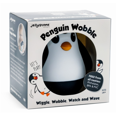 Thanks to its cleverly weighted base, this cheeky penguin is always ready for a round of playful wibble wobble action. It's just the right size for those tiny hands to grasp, shake, and topple! Sporting classic black and white hues, it's a visual delight for newborns to focus on. The Penguin Wobble is crafted from soft, textured silicone that's naturally free from all nasties, ensuring a safe exploration of senses for your baby.