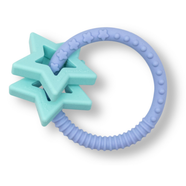 The Star Teether presents a convenient ring for little hands to grasp, accompanied by two vibrant stars that are gentle on gums, making it perfect for teething infants. Easily attach the teether to your nappy bag or stroller to ensure it's never misplaced! Crafted from BPA-free, phthalate-free, non-toxic silicone, this teether is entirely safe for your little one to chew on.