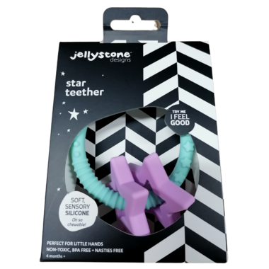 The Star Teether presents a convenient ring for little hands to grasp, accompanied by two vibrant stars that are gentle on gums, making it perfect for teething infants. Easily attach the teether to your nappy bag or stroller to ensure it's never misplaced! Crafted from BPA-free, phthalate-free, non-toxic silicone, this teether is entirely safe for your little one to chew on.