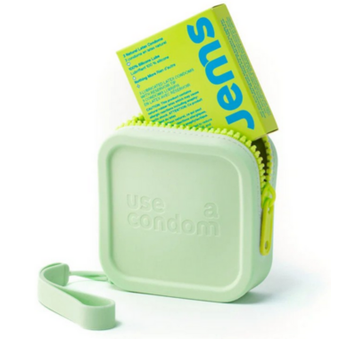 Their Silicone Case keeps both you and your condoms safer. This silicone carrying case is designed to fit the Jems 3-pack of condoms package, measuring 3.5” x 3.5” x 1”.