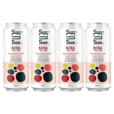 - 4x Jenji Boba Tea Strawberry Latte with Coco Jelly Boba, 490mL