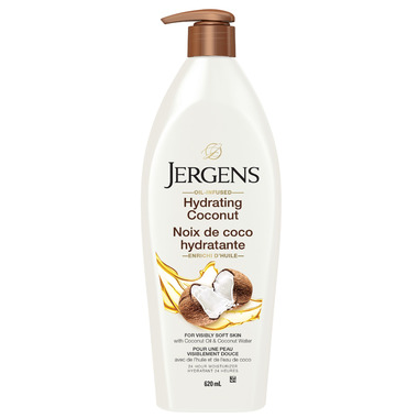 Jergens Hydrating Coconut Moisturizer drenches your skin in moisture for incredible softness. This nourishing oil blend is infused with Coconut Oil and Coconut Water, known to be rich with revitalizing properties. Hydrate and quench dry, thirsty skin to reveal visibly soft skin. Oil-Infused formulas from Jergens Skincare lock in long-lasting hydration with the moisturizing power of essential ingredients to give you visibly beautiful skin.