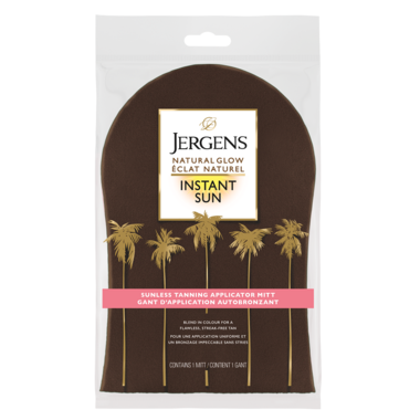 Get a beautiful, sun-drenched, streak-free tan by using the Jergens Instant Sun Sunless Self tanning Mitt to smooth on your favourite sunless tanner. Specifically designed to achieve a streak-free tan, our applicator mitt effortlessly blends tanning products onto the skin for a flawless finish while protecting your hands from staining. Use with your favourite Jergens Natural Glow products for an easy, even, hassle-free, mess-free tan that works with your skin tone to give you foolproof, natural-looking colour.