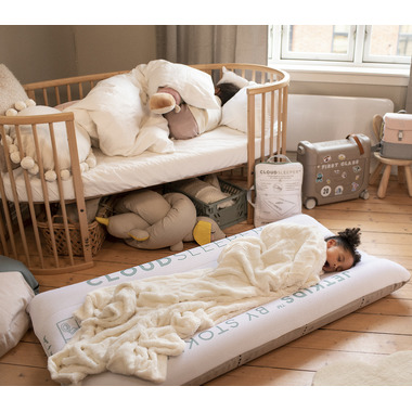 The Kids’ Travel Bed for Home and Away. The CloudSleeper is the all-in-one inflatable travel bed for toddlers and children three years and above. It's a travel bed made easy that's small enough to fit inside your backpack or hand luggage. Lightweight and all-inclusive, it has no loose parts. A true innovation for children's inflatable travel beds. Durable TPU coated nylon base inflatable mattress, similar material to a high-end hiking mattress.