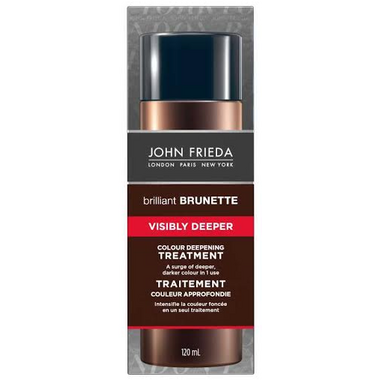 Reveal rich, dimensional brunette and shine with John Frieda Brilliant Brunette Visibly Deeper Colour Deepening Treatment. our Colour Deepening Treatment creates a darker, more lustrous brunette.