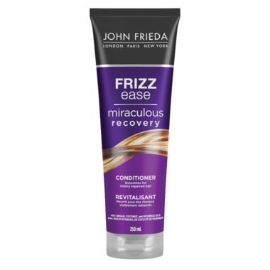 John Frieda Frizz Ease Miraculous Recovery Repairing Conditioner is for frizzy hair in need of rescue; this conditioner uses a powerful formula infused with Amino Repair Complex and vital nutrients. It provides a healthier-looking and feeling style. This repairing conditioner is suitable for all levels of frizz.