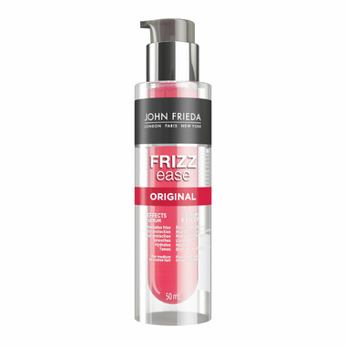 John Frieda Frizz Ease Original 6 Effects Serum protects each strand against the onset of frizz. Expertly formulated with an exceptionally unique blend of silicones combined with silk protein, this serum for frizzy hair tames unruly flyaways and boosts shine. It is suitable for all levels of frizz, and it is safe for colour-treated and chemically treated hair. Comes with heat protection.