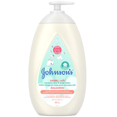 The newborn lotion is blended with real cotton and is soft on a newborn's skin. Like all Johnson's products, CottonTouch Newborn Baby Face and Body Lotion is designed to meet or exceed the top internationally recognized regulatory standards, so you can feel good about using it on your little one. This newborn skin moisturizer is formulated for newborns but is also suitable for babies, toddlers, kids and adults. In an economic 800 ml size.