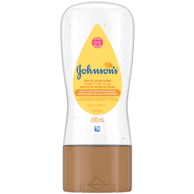 • Johnson's Baby Oil Gel with Shea and Cocoa Butter locks in up to 10 times more moisture