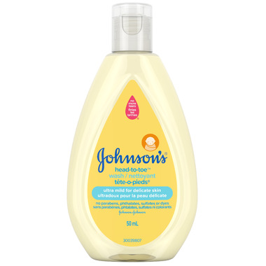 - Johnson's Head-To-Toe Baby Body Wash and Shampoo travel size gently cares for baby's sensitive skin