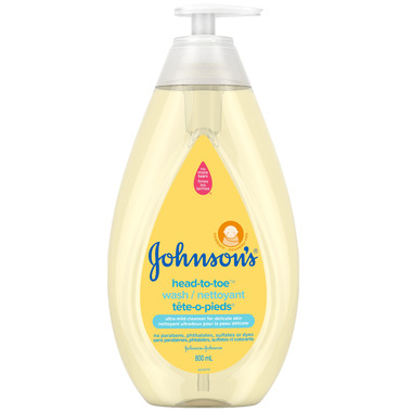 The Johnson's No More Tears formula makes this baby wash tear-free and as gentle to your baby's eyes as pure water. Johnson's Head-to-Toe Wash and Shampoo contains no parabens, phthalates, or dyes. Apply the hypoallergenic baby wash and shampoo with warm water using your hand or a washcloth, gently lather, rinse, and follow with a gentle massage using Johnson's Head-to-Toe Baby Lotion.