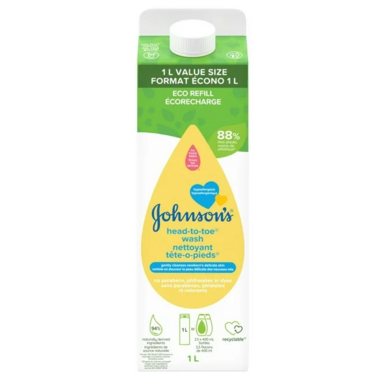 - Gently cleanses your baby's skin & scalp: JOHNSON'S Head-to-Toe Wash 1L Carton Refill is a 2 in 1 baby care product designed specifically for your child's delicate skin and hair. Wash away dirt with this mild baby wash.