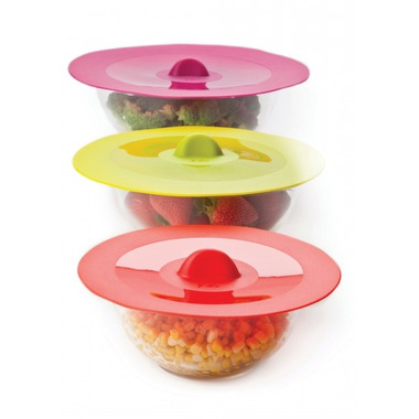 Create an airtight seal on any container or pot with the Joie Silicone Lids. This three piece set is great for leftovers and reduces the need for foil paper, plastic wraps and freezer bags.