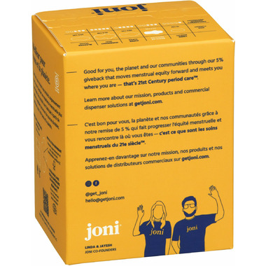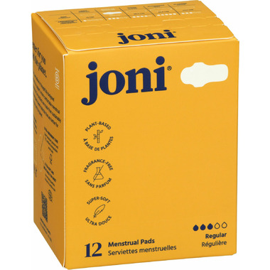 Go through your period in comfort using joni Organic Bamboo Regular Pads that are ultra thin, winged, ultra-comfortable, provide stay-put protection and know that you're doing your body, your community, and the planet a solid! 12 pads in a box and recommended for light to medium flow