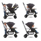 - Compact ride. Graphite-coloured steel frame with a new lean profile makes strolling with two kids a breeze. Comfortable front seat, now with 3-position recline for naps on-the-go.