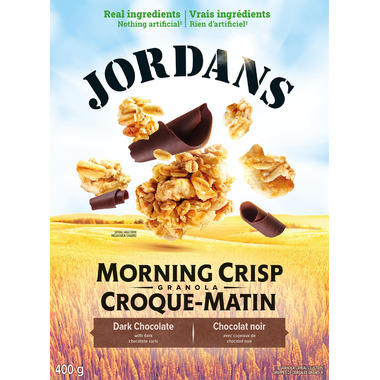 Jordans granola clusters with dark chocolate curls. These granola clusters are made with remarkable, real ingredients that provide an exquisite flavour and a light, crispy crunch. Try something new and use Dark Chocolate granola cluster cereal on ice cream, in smoothie bowls and for snacking.