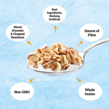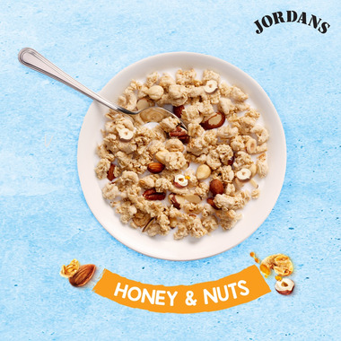 Jordans granola clusters with almonds, hazelnuts and honey. This granola clusters are made with remarkable, real ingredients that provide an exquisite flavour and a light, crispy crunch. Try something new and use Honey & Nuts granola cluster cereal on ice cream, in smoothie bowls and for snacking.