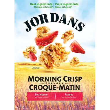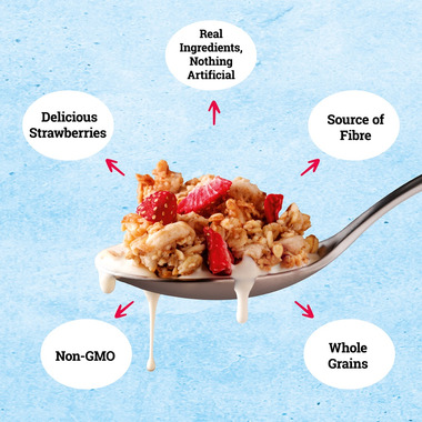 Jordans granola clusters with strawberry pieces.These granola clusters are made with remarkable, real ingredients that provide an exquisite flavour and a light, crispy crunch. Try something new and use Strawberry granola cluster cereal on ice cream, in smoothie bowls and for snacking.
