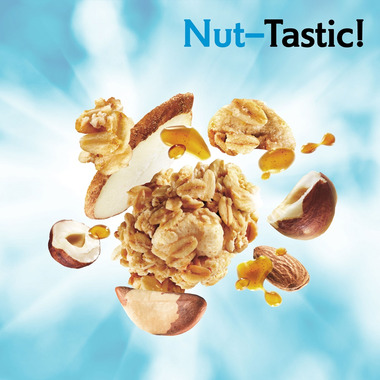 Crunchy Nut Trio granola with almonds, hazelnuts and Brazil nuts. This Granola is a hearty and satisfying blend of real ingredients that provide a medley of exceptionally vibrant flavours complemented by a bold crunch.