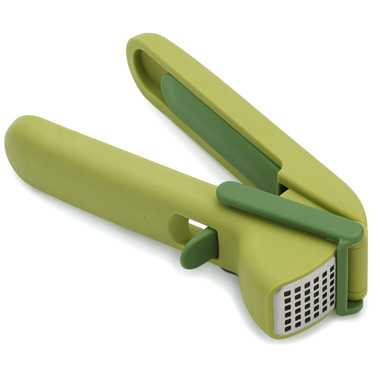 This powerful garlic press crushes cloves with ease and features a wiper blade and a handy scraping tool for easy cleaning. Just pop a clove or two inside the head and squeeze the handles to crush.