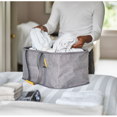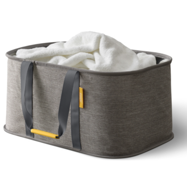 Joseph Joseph's Collapsible Laundry Basket in grey has strong carry handles. Folds flat for