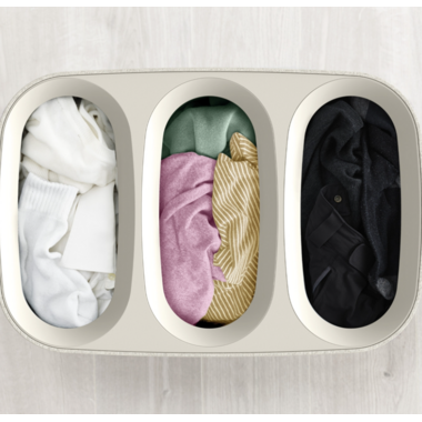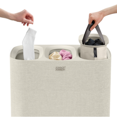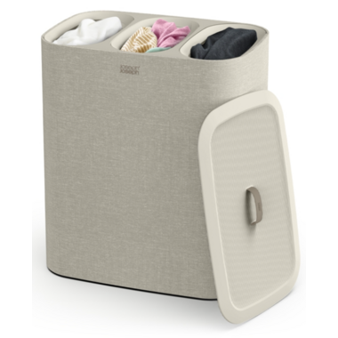 Joseph Joseph's Easy-Empty Laundry Basket in ecru has three compartments for easy separation