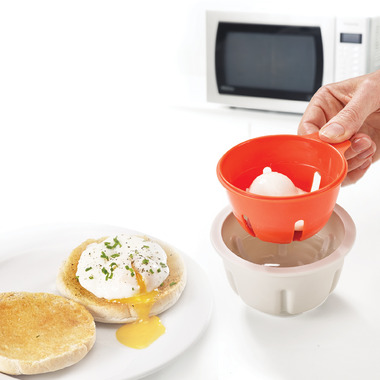The M-Cuisine Microwave Egg Poacher has a lift-and-drain colander and lid. All the steps to cook, drain and serve a perfect poached egg in the microwave in one simple-to-use design.
