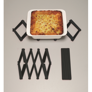 Stretch Expandable Trivet opens to 5 x 21.5". Most pot stands, or trivets, only provide enough space for a single hot pan or dish. The unique design can be easily adjusted to provide space for more than one pan, or even a single large casserole dish. After use, it folds neatly away for convenient storage.
