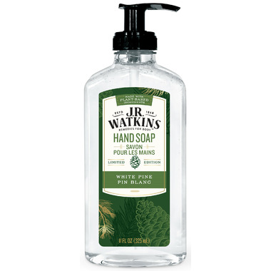 J.R. Watkins Limited Edition White Pine Liquid Hand Soap leaves hands soft and clean with a fresh, evergreen scent.