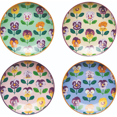 Welcome spring with the Pansy appie plates set! Playful blooms, stalky stems, and a burst of purple, yellow, and green celebrate the hearty flowers that lead the way into a fresh, new season.